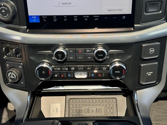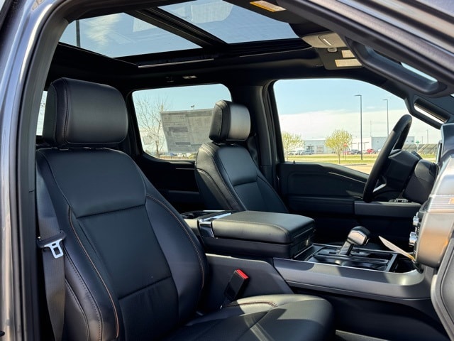 Check out the rest of the great features on this vehicle! Bed Utility Package (4 Pickup Box Tie-Down Plates, LED Box Lighting, Power Tailgate, and Pro Access Tailgate), FX4 Off-Road Package (4x4 FX4 Off-Road Bodyside Decal, Electronic Locking w/3.31 Axle Ratio, Hill Descent Control, Monotube Rear Shocks, Off-Road Tuned Front Shock Absorbers, Rock Crawl Mode, and Tray Style Floor Liner w/o Carpet Mats), Mobile Office Package (Console Worksurface, Partitioned Lockable Rear Storage, and Wireless Charging), Equipment Group 501A Mid (Wheels: 20" Chrome-Like PVD), Tow/Haul Package, 3.5L PowerBoost Full-Hybrid V6, 4WD, Tough Bed Spray-In Bedliner, Twin Panel Moonroof, 4-Wheel Disc Brakes, 8 Speakers, ABS brakes, Adjustable pedals, Air Conditioning, Alloy wheels, Auto High-beam Headlights, Auto-dimming door mirrors, Auto-dimming Rear-View mirror, Automatic temperature control, BlueCruise Equipped (1-Year Plan), Brake assist, Bumpers: chrome, Chrome wheels, Compass, Delay-off headlights, Driver door bin, Driver vanity mirror, Dual front impact airbags, Dual front side impact airbags, Electronic Stability Control, Emergency communication system: SYNC 4 911 Assist, Front anti-roll bar, Front Bucket Seats, Front Center Armrest, Front fog lights, Front License Plate Bracket, Front reading lights, Front wheel independent suspension, Fully automatic headlights, Garage door transmitter, Heated door mirrors, Heated Rear Seats, Heated Steering Wheel, Illuminated entry, Low tire pressure warning, Memory Seat, Navigation system: Connected Navigation, Occupant sensing airbag, Outside temperature display, Overhead airbag, Overhead console, Panic alarm, Passenger door bin, Passenger vanity mirror, Pedal memory, Power door mirrors, Power driver seat, Power passenger seat, Power steering, Power windows, Pro Power Onboard - 7.2KW, Radio data system, Radio: B&O Sound System by Bang & Olufsen, Rain Sensing Wipers, Rear reading lights, Rear seat center armrest, Rear step bumper, Rear window defroster, Remote keyless entry, Security system, Speed control, Split folding rear seat, Steering wheel mounted audio controls, SYNC 4 w/Enhanced Voice Recognition, Tachometer, Telescoping steering wheel, Tilt steering wheel, Traction control, Tri Zone Auto Climate Control, Trip computer, Turn signal indicator mirrors, Variably intermittent wipers, Ventilated front seats, Voltmeter, Wheel Well Liner, and Wheels: 18" Chrome-Like PVD. Price includes: $1000 - Bonus Cash