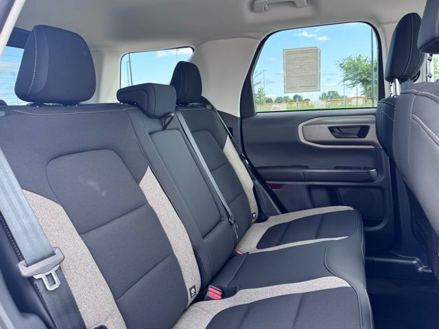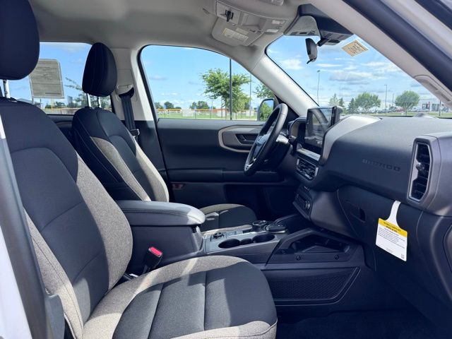 Inside, the cabin is smartly designed for comfort and utility. Youll find easy-to-clean cloth bucket seats, a premium wrapped steering wheel, and smart technology everywhere you look. Stay connected with SYNC 4 featuring Apple CarPlay and Android Auto, while adaptive cruise control and lane-keeping assist add reassurance on long drives. For convenience, this Bronco Sport includes push-button start, keyless entry, and wireless phone charging, creating a seamless blend of function and modern tech.