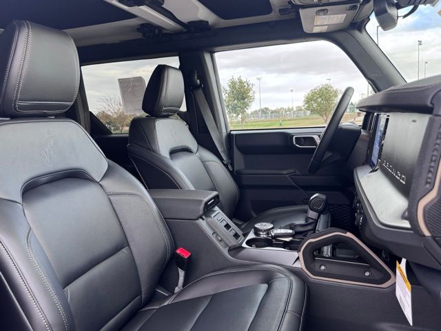 Inside, the Broncos cabin is crafted for adventure and convenience. Marine grade vinyl heated bucket seats, a heated steering wheel, and heated rear seats ensure comfort no matter the weather, while tri-zone automatic climate control keeps everyone coolor cozy. Advanced connectivity features include SYNC 4, Apple CarPlay, Android Auto, Bluetooth, navigation, and a USB/Wi-Fi hotspot, ensuring youre always in touch and entertained on the road or off the beaten path. Push-button start, remote start, and keyless entry add everyday convenience, while safety technologies like lane-keeping assist, adaptive cruise control, and a rearview camera provide peace of mind on every journey.