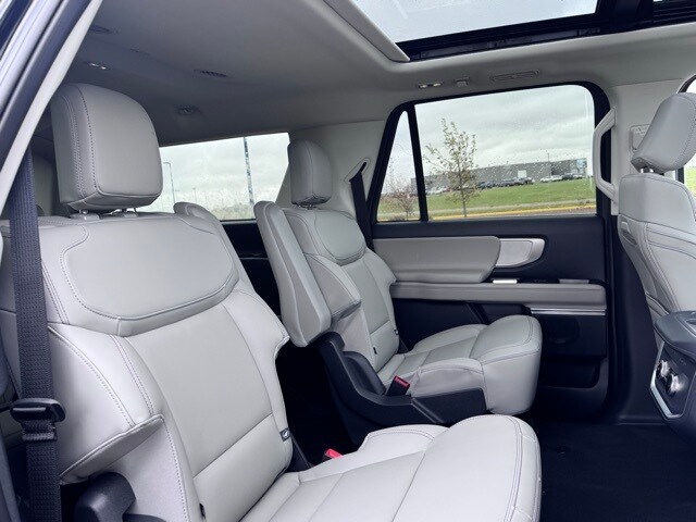 Check out the rest of the great features on this vehicle! Equipment Group 202A High Package (110V/400W AC Power Outlet, 26mm Engine Radiator, 2nd Row Power-Folding Captain's Chairs, 360-Degree Zone Lighting, 3rd Row Flexible Seating, 3rd Row Vinyl Seats, 4-Door Intelligent Access (Lock/Unlock), ActiveX Front Heated Captain's Chairs, BlueCruise Equipped, Flex Powered Console, Ford Split Gate, Front Side Laminated Glass, Heated Leather Wrapped Steering Wheel, Heavy-Duty Trailer Tow, Integrated Trailer Brake Control, Memory Driver Seat, Power Panoramic Vista Roof w/Power Sunshade, Power Tilt/Telescopic Steering Wheel w/Memory, Power-Folding Sideview Mirrors w/Autofold, Rain Sensing Wipers, SecuriCode Keyless Entry Keypad, Universal Garage Door Opener, USB Ports, Wheels: 20" Carbonized Gray Bright Machined Aluminum, and Wireless Charging Pad), 3.73 Axle Ratio, 3rd row seats: split-bench, 4-Wheel Disc Brakes, 6 Speakers, ABS brakes, Air Conditioning, Alloy wheels, AM/FM radio: SiriusXM with 360L, Apple CarPlay/Android Auto, Auto High-beam Headlights, Auto-dimming Rear-View mirror, Automatic temperature control, Brake assist, Bumpers: body-color, Cloth Front Captain's Chairs, Compass, Delay-off headlights, Driver door bin, Driver State Detection, Driver vanity mirror, Dual front impact airbags, Dual front side impact airbags, Electronic Stability Control, Emergency communication system: 911 Assist, Engine Block Heater, Exterior Parking Camera Rear, Four wheel independent suspension, Front anti-roll bar, Front Bucket Seats, Front Center Armrest, Front License Plate Bracket, Front reading lights, Fully automatic headlights, Heated door mirrors, Illuminated entry, Intersection Assist, Low tire pressure warning, Occupant sensing airbag, Outside temperature display, Overhead airbag, Overhead console, Panic alarm, Passenger door bin, Passenger vanity mirror, Power door mirrors, Power driver seat, Power passenger seat, Power steering, Power windows, Radio data system, Radio: AM/FM Stereo w/MP3 Capable, Rear air conditioning, Rear anti-roll bar, Rear reading lights, Rear window defroster, Rear window wiper, Reclining 3rd row seat, Remote keyless entry, Security system, SiriusXM w/360L, Speed control, Speed-sensing steering, Speed-Sensitive Wipers, Split folding rear seat, Spoiler, Steering wheel mounted audio controls, Tachometer, Telescoping steering wheel, Tilt steering wheel, Traction control, Tri Zone Auto Climate Control, Trip computer, Variably intermittent wipers, Voice Activated Navigation System, Voltmeter, and Wheels: 18" Dark Alloy Painted Aluminum.