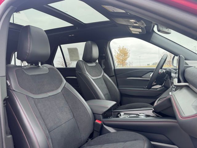 Built for those who crave more from every drive, the Explorer STs bold stance and sculpted body lines are matched by its commanding presence. Standard 21-inch Magnetite-painted aluminum wheels, sleek LED lighting, and body-color bumpers add to its dynamic style. Step inside, and youre greeted by an interior designed around comfort, technology, and control. The Onyx leather-trimmed cabin features Heated and Ventilated Miko Sport Captains Chairs, a heated steering wheel, and Tri-Zone Automatic Climate Control that ensures personalized comfort for all three rows.