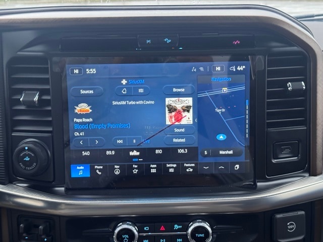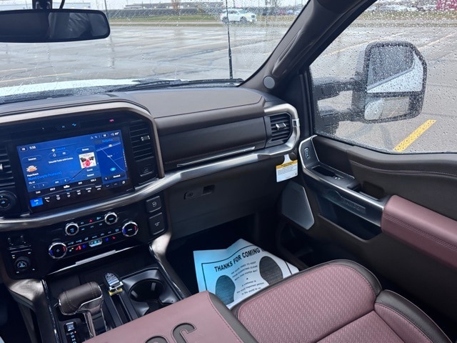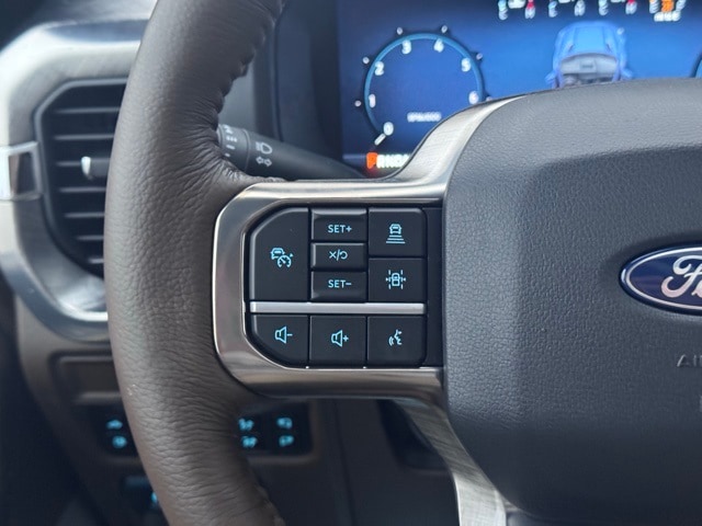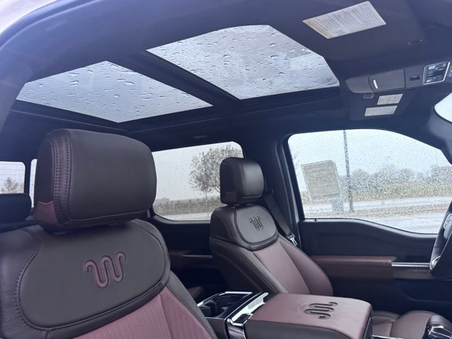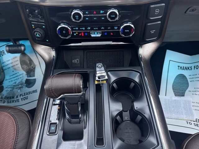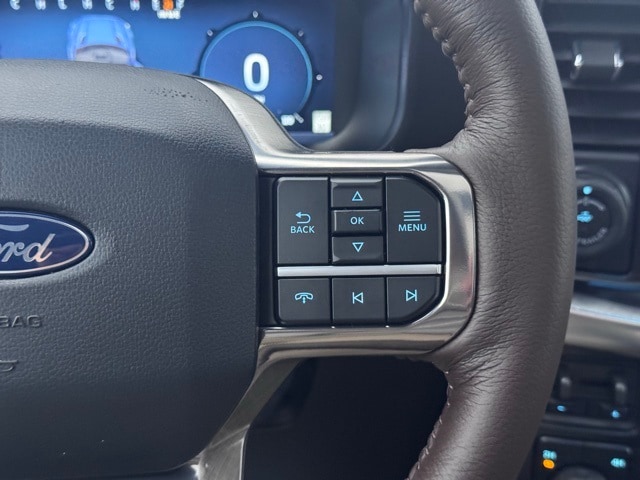 Check out the rest of the great features on this vehicle! 3.5L PowerBoost Full-Hybrid V6, 4WD, 14 Speakers, 4-Wheel Disc Brakes, ABS brakes, Adjustable pedals, Air Conditioning, Alloy wheels, AM/FM radio: SiriusXM with 360L, Auto High-beam Headlights, Auto tilt-away steering wheel, Auto-dimming door mirrors, Auto-dimming Rear-View mirror, Automatic temperature control, Brake assist, Chrome wheels, Compass, Delay-off headlights, Driver door bin, Driver vanity mirror, Dual front impact airbags, Dual front side impact airbags, Electronic Locking w/3.55 Axle Ratio, Electronic Stability Control, Emergency communication system: SYNC 4 911 Assist, Front anti-roll bar, Front Bucket Seats, Front Center Armrest, Front fog lights, Front reading lights, Front wheel independent suspension, Fully automatic headlights, Garage door transmitter, Genuine wood dashboard insert, Heads-Up Display, Heated door mirrors, Heated Rear Seats, Heated Rear Seats, Heated Steering Wheel, Illuminated entry, King Ranch Multicontour Leather Bucket Seats, Leather steering wheel, Low tire pressure warning, Memory Seat, Navigation system: Connected Navigation, Occupant sensing airbag, Outside temperature display, Overhead airbag, Overhead console, Panic alarm, Passenger door bin, Passenger vanity mirror, Pedal memory, Power door mirrors, Power driver seat, Power Moonroof, Power passenger seat, Power steering, Power windows, Radio data system, Radio: B&O Unleashed Sound System by Bang & Olufsen, Rain Sensing Wipers, Rear reading lights, Rear seat center armrest, Rear step bumper, Rear window defroster, Remote keyless entry, Security system, Speed control, Split folding rear seat, Steering wheel memory, Steering wheel mounted audio controls, SYNC 4 w/Enhanced Voice Recognition, Tachometer, Telescoping steering wheel, Tilt steering wheel, Traction control, Tri Zone Auto Climate Control, Trip computer, Turn signal indicator mirrors, Variably intermittent wipers, Ventilated front seats, Voltmeter, and Wheels: 20" Chrome-Like PVD.
