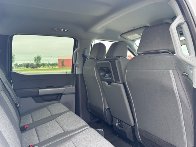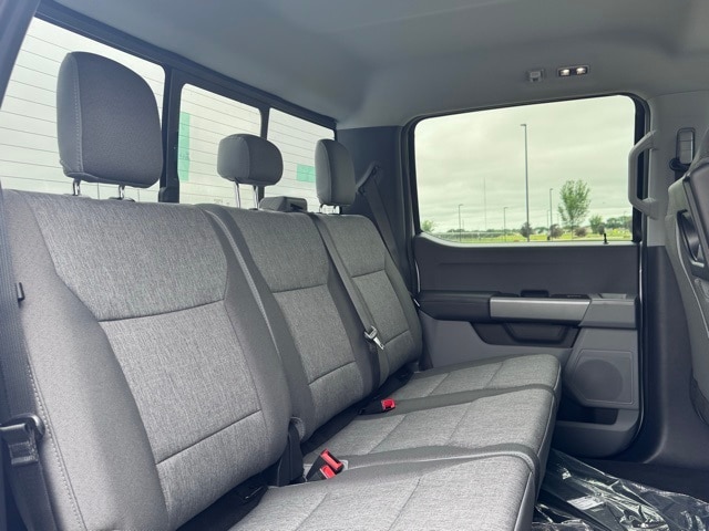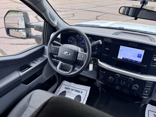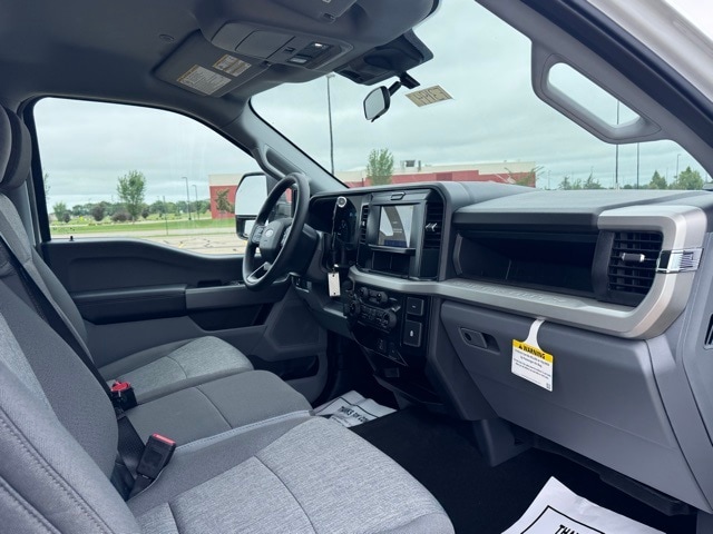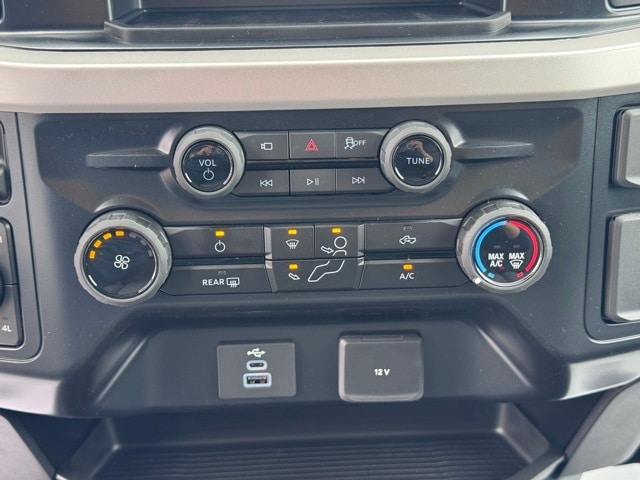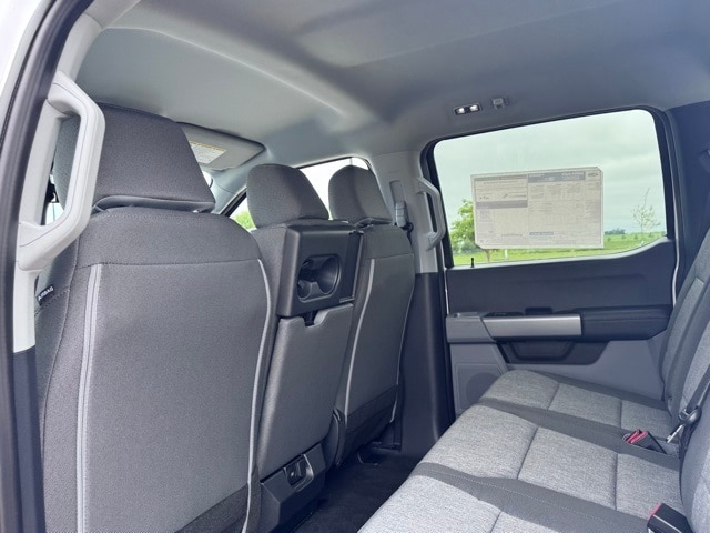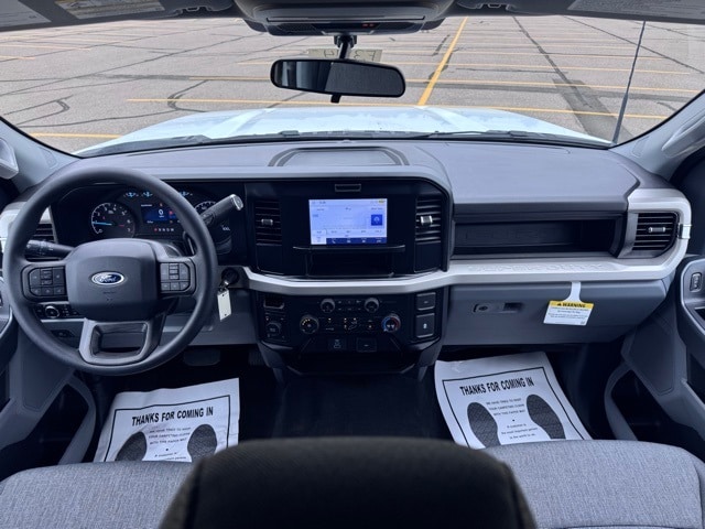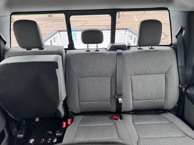 The interior balances practicality and comfort with HD vinyl 40/20/40 split bench seats, front center armrest with storage, power windows and mirrors, and telescoping/tilt steering wheel. Advanced technology keeps you connected with SYNC 4 infotainment, AM/FM radio with MP3 capability, Bluetooth, USB, Wi-Fi hotspot, and steering wheel-mounted audio controls. Convenience features such as keyless entry, backup camera, rear step bumper, and emergency communication (SYNC 4 911 Assist) make driving and working effortless.