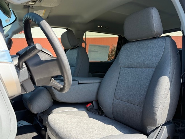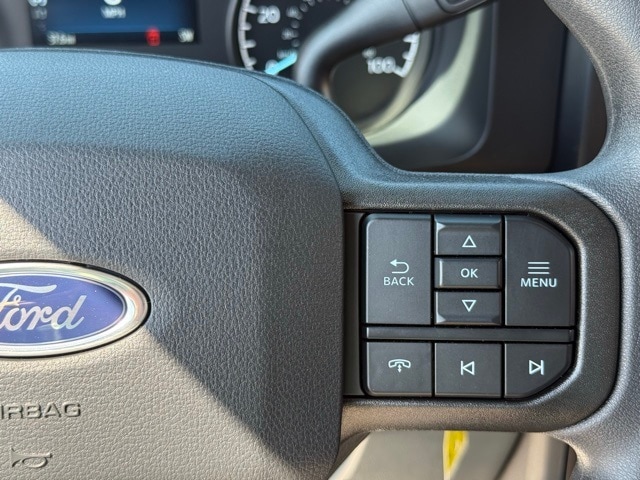 Inside, the cabin offers practical comfort and technology for long workdays and family trips. HD vinyl 40/20/40 split bench seats, front center armrest with storage, power windows, power door mirrors, and speed control provide convenience, while SYNC 4 infotainment, Bluetooth, USB ports, AM/FM stereo with MP3, backup camera, and Wi-Fi hotspot keep you connected and entertained. Additional safety features include dual front and side airbags, emergency communication via SYNC 4 911 Assist, blind spot monitoring, collision warning system, panic alarm, and parking sensors, providing peace of mind on every journey.