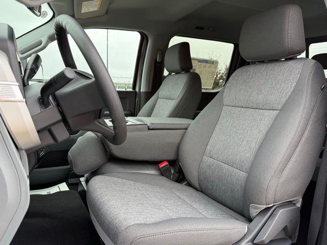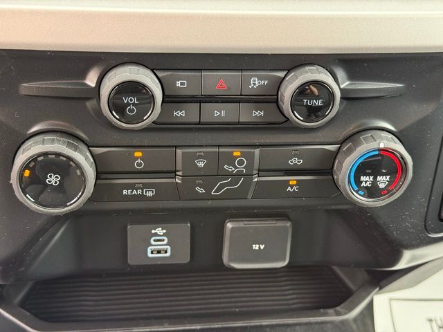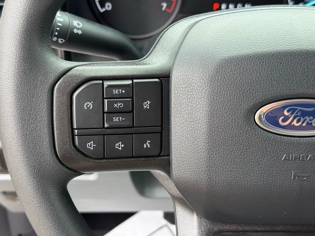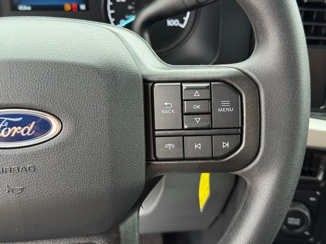 Inside, the cabin is designed for functionality and comfort. HD vinyl 40/20/40 split bench seats, front center armrest with storage, power windows, power door mirrors, speed control, and steering wheel-mounted audio controls make driving convenient and efficient. The SYNC 4 infotainment system, Bluetooth, USB ports, AM/FM stereo with MP3, Wi-Fi hotspot, and backup camera keep you connected and informed while on the go. Safety features include dual front and side airbags, emergency communication (SYNC 4 911 Assist), blind spot monitoring, collision warning system, parking sensors, panic alarm, and low tire pressure warning, ensuring peace of mind for all passengers.