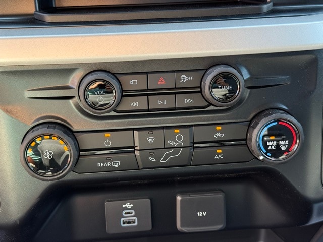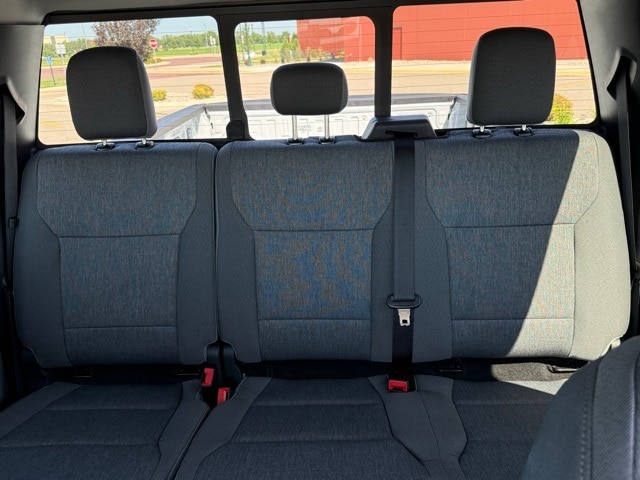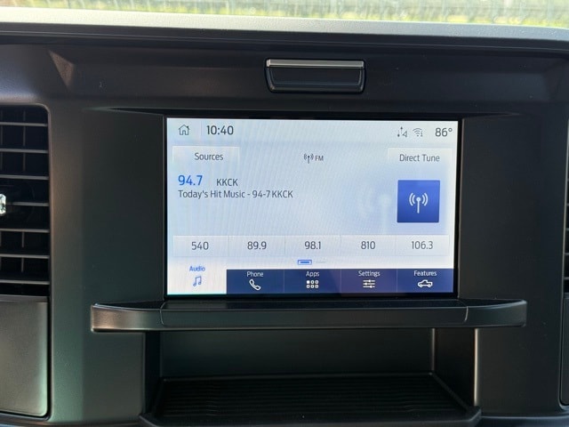 The cabin is designed with functionality and comfort in mind. It includes HD vinyl 40/20/40 split bench seats, front center armrest with storage, fully automatic headlights, heated door mirrors, power windows, power door mirrors, and speed control, making each drive comfortable and convenient. Technology is integrated seamlessly with SYNC 4 infotainment system, Bluetooth connectivity, USB ports, AM/FM stereo with MP3 capability, and a rearview camera for enhanced safety and convenience. Additional safety features include dual front and side airbags, emergency communication via SYNC 4 911 Assist, panic alarm, and blind spot monitoring, ensuring peace of mind on every trip.
