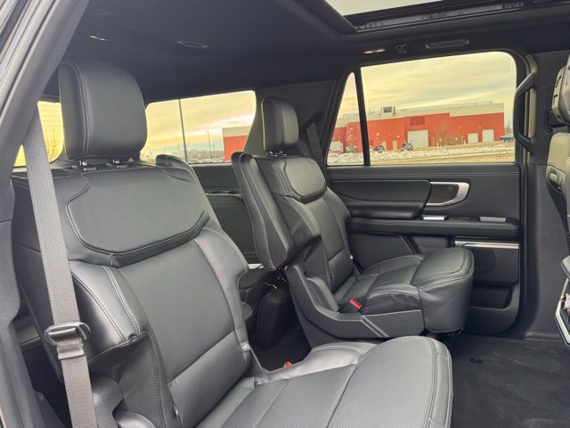 Check out the rest of the great features on this vehicle! Equipment Group 600A Standard Package (2nd Row Power-Folding Captain's Chairs, 3.73 Axle Ratio, BlueCruise Equipped (90-Day Trial), Ford Digital Experience, Heated and Ventilated Leather Front Captain's Chairs, Power Tilt/Telescopic Steering Wheel with Memory, Radio: B&O Sound System by Bang and Olufsen, SiriusXM with 360L, and Wheels: 20" x 8.5" Ebony Bright Machined Aluminum), Ford Connectivity Package (1-Year Included), Stealth Appearance Package (Black Belt Molding, Black Expedition Lettering on Hood, Black Headlamp Bezel with Ebony Trim Applique, Black Platinum Badge on Tailgate, Black Roof Rails, Carbon Black Front Bumper/Fascia, Rear Side Windows Laminated Glass, and Signature Grille Lighting), 4WD, 10 Speakers, 3rd row seats: split-bench, 4-Wheel Disc Brakes, ABS brakes, Air Conditioning, Alloy wheels, AM/FM radio: SiriusXM with 360L, Apple CarPlay/Android Auto, Auto High-beam Headlights, Auto-dimming door mirrors, Auto-dimming Rear-View mirror, Automatic temperature control, Brake assist, Bumpers: body-color, Compass, Delay-off headlights, Driver door bin, Driver vanity mirror, Dual front impact airbags, Dual front side impact airbags, Electronic Stability Control, Emergency communication system: 911 Assist, Exterior Parking Camera Rear, Four wheel independent suspension, Front anti-roll bar, Front Bucket Seats, Front Center Armrest, Front License Plate Bracket, Front reading lights, Fully automatic headlights, Garage door transmitter, Genuine wood dashboard insert, Genuine wood door panel insert, Heated door mirrors, Heated Rear Seats, Heated Rear Seats, Heated Steering Wheel, Illuminated entry, Intersection Assist, Leather steering wheel, Low tire pressure warning, Memory Seat, Occupant sensing airbag, Outside temperature display, Overhead airbag, Overhead console, Panic alarm, Panoramic Vista Roof, Passenger door bin, Passenger vanity mirror, Power door mirrors, Power driver seat, Power passenger seat, Power steering, Power windows, Radio data system, Rain Sensing Wipers, Rear air conditioning, Rear anti-roll bar, Rear reading lights, Rear window defroster, Rear window wiper, Reclining 3rd row seat, Remote keyless entry, Security system, Speed control, Speed-sensing steering, Speed-Sensitive Wipers, Split folding rear seat, Spoiler, Steering wheel memory, Steering wheel mounted audio controls, Tachometer, Telescoping steering wheel, Tilt steering wheel, Traction control, Tri Zone Auto Climate Control, Trip computer, Turn signal indicator mirrors, Variably intermittent wipers, Ventilated front seats, Voice Activated Navigation System, and Voltmeter.