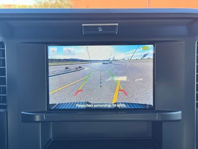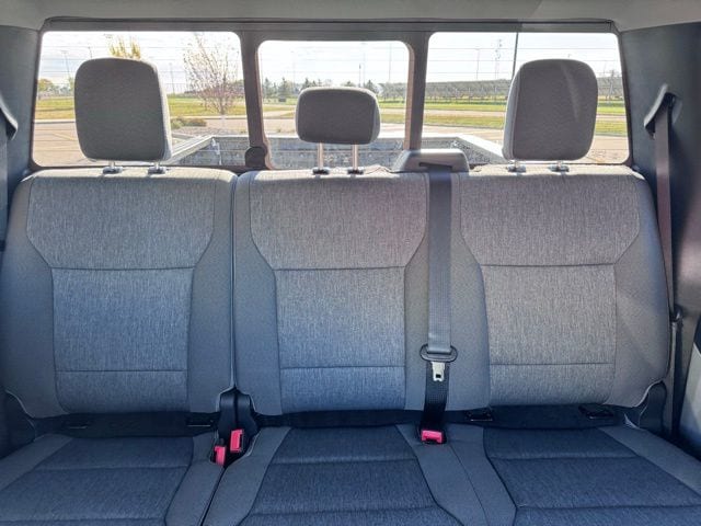 The cabin balances comfort and utility, featuring Cloth 40/20/40 Split Bench Seats, power driver seat, heated door mirrors, and privacy glass, providing a practical yet comfortable environment. Advanced tech includes SYNC 4, Apple CarPlay, Android Auto, Bluetooth, USB connectivity, and a 5G modem-capable Ford Connectivity Package. Safety features such as blind spot monitoring, rear backup camera, electronic stability control, and SYNC 4 911 Assist ensure confidence on every journey.