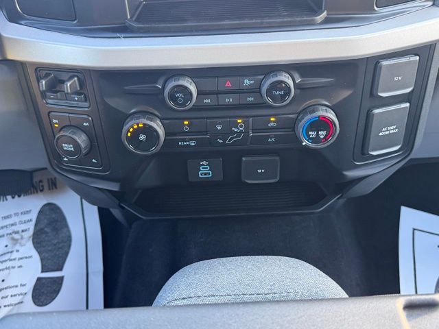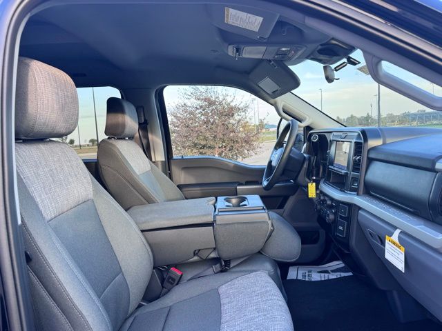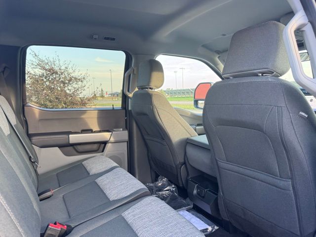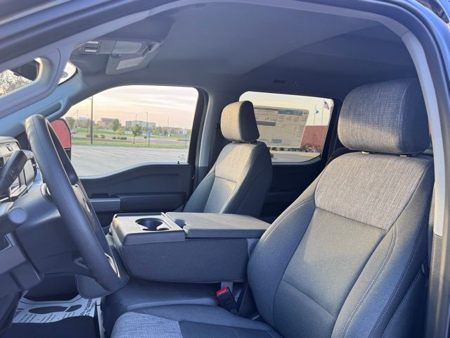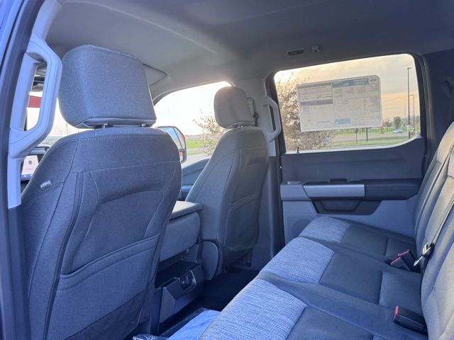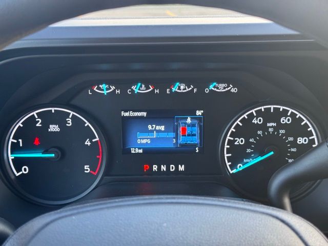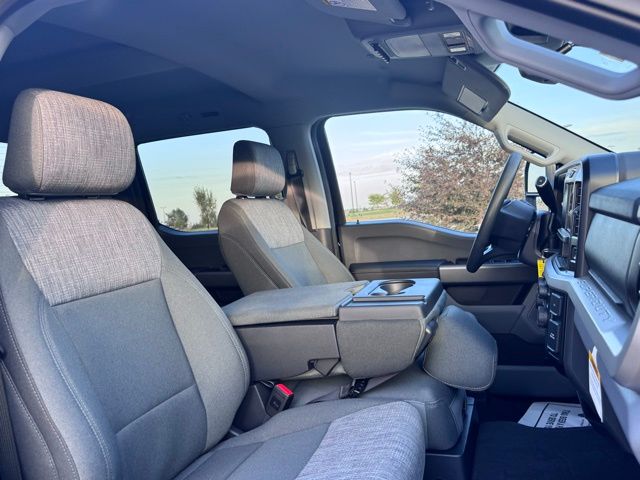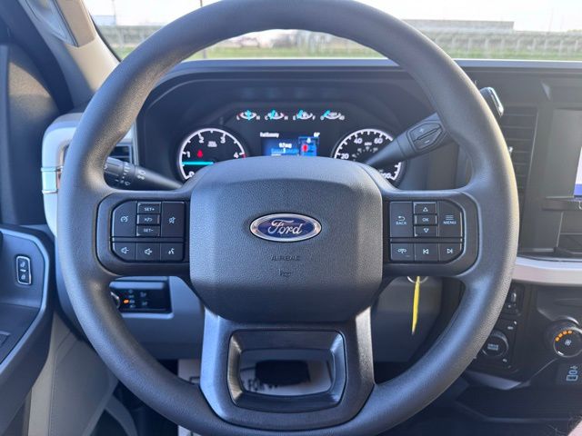 The Medium Dark Slate interior combines practicality and comfort, featuring a cloth 40/20/40 split bench seat, power-adjustable driver seat, heated door mirrors, and a front center armrest with storage. Advanced technology keeps you connected with the Ford Connectivity Package, including a 5G modem, Wi-Fi hotspot, SYNC 4 infotainment system, USB ports, AM/FM stereo with MP3 player, and steering wheel-mounted audio controls.
