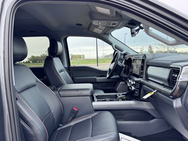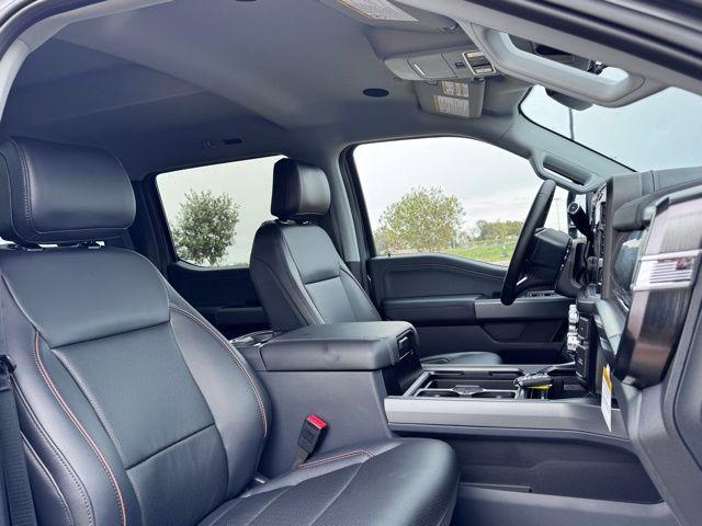 The F-350 Lariat is loaded with premium interior features, including Front ActiveX Trimmed 40/Console/40 Seats, heated and ventilated front seats, heated rear seats, heated steering wheel, and memory seating. The flow-through console adds practicality, while remote start, push start, garage door transmitter, and rear parking sensors make every drive effortless. Exterior upgrades like chrome bumpers, privacy glass, and rain-sensing wipers give it a bold, commanding presence.