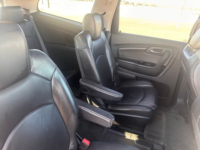 Boasting an impressive array of premium features, this Traverse is designed to elevate your driving experience. Enjoy the convenience of a power moonroof, the comfort of heated seats, and the peace of mind of a backup camera and remote start. The entertainment system with a rear-seat DVD player and Bose surround sound will keep your passengers entertained on every journey.