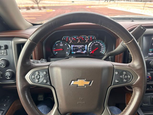 The High Country trim takes this Silverado to the next level, offering a voice-activated navigation system, HD radio, a single-slot CD/MP3 player, steering wheel audio controls, dual-zone automatic climate control, a 110-volt power outlet, Bluetooth connectivity, a power sliding rear window, and more. The leather-wrapped heated steering wheel, power-adjustable pedals, and remote start add an extra layer of comfort and convenience.