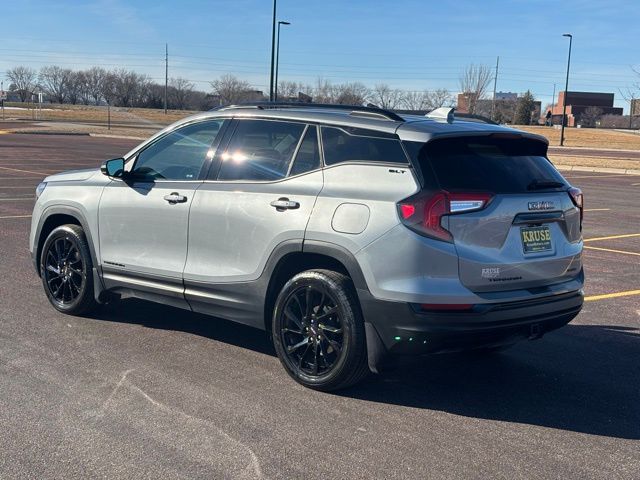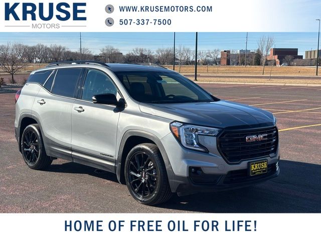 The Terrain SLT also boasts the Elevation Edition, which adds a touch of bold sophistication with its 19" gloss black aluminum wheels, darkened front grille, black roof-mounted side rails, and black exterior accents. Additionally, the Terrain Pro Safety Plus package enhances your driving confidence with features like Adaptive Cruise Control, Safety Alert Seat, and Rear Park Assist.