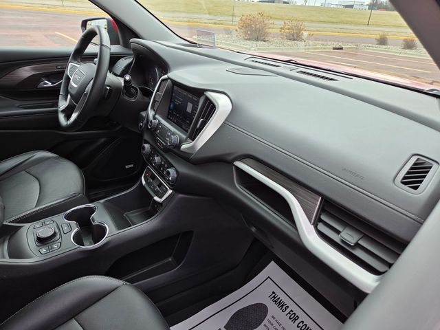 Powered by a 1.5L DOHC engine and equipped with a 9-speed automatic transmission and AWD, the Terrain SLT delivers a responsive and efficient driving experience. With an EPA-estimated 23 city/28 highway MPG, you can enjoy the perfect balance of power and efficiency.